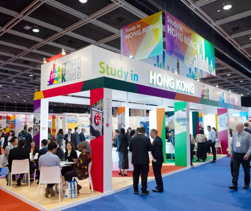 (图为八所大学联合设立展馆,向全球推广“留学香港”品牌。)