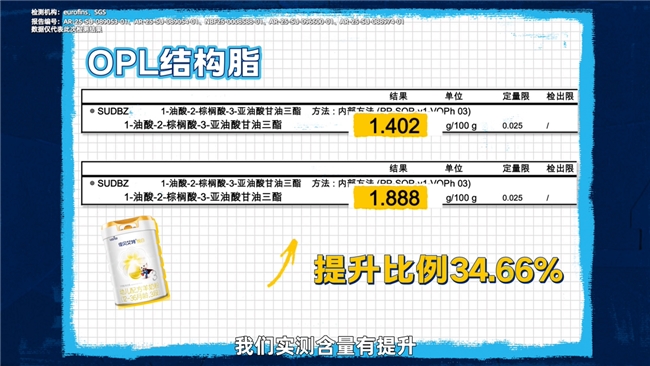从天然基础来看,羊奶本身是“天生小分子食材”:脂肪球颗粒直径仅为牛奶的1/3,能快速与消化酶接触分解;αS1-酪蛋白含量更低,以贴近母乳的β-酪蛋白为主,凝乳软而细小,大幅降低消化负担。在此基础上,悦白配方中,添加中国母乳中含量更高的OPL结构脂(与OPO同属SN-2棕榈酸),实测含量提升30%,这种成分不仅能有效减少钙皂形成、避免宝宝便秘,其吸收率还比普通OPO高出近一倍,相当于一罐能吸收别人两罐的营养;再搭配天然A2蛋白,构建起“羊奶小分子+OPL+A2蛋白”的吸收体系,让整体吸收率高达95%。