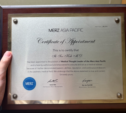 此外,其亦被MERZ Asia Pacific授予“Medical Thought Leader(亚洲医学意见领袖)”,参与区域层面的医学交流与技术指导。