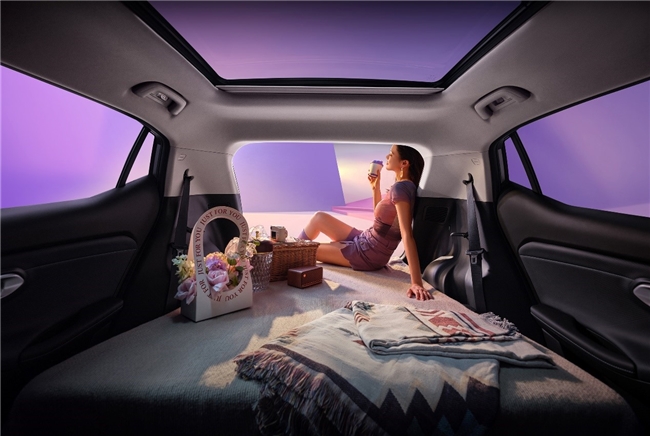 尤为方便的是,后排座椅一键即能全平放倒,瞬间变出一个1.8米长的平整空间,容积可拓展至1271L,更多的行李装备也能轻松装下。露营时铺上充气床垫,打开全景天窗,一个“移动的春天卧室”就此诞生。躺在车里,头顶是蓝天白云,耳边是风声鸟鸣,阳光透过天窗洒进来,整个人瞬间放松下来。