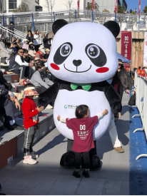 2025年12月27日,小球迷拥抱中国人寿财险吉祥物“财宝”。高敏媛摄